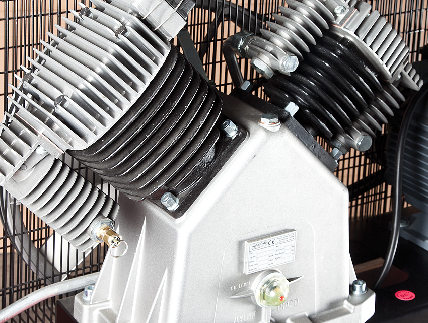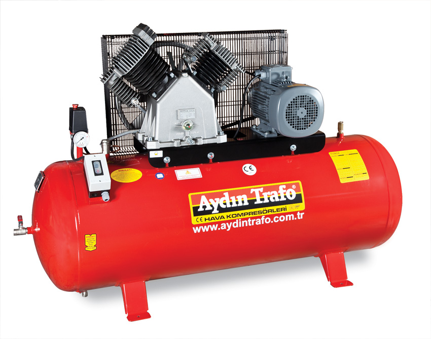 Çİft kademeli, çift ve üç silindirli, trifaze ve monofaze (2 hp’ye kadar) elektrik motorlu olarak üretilen pistonlu hava kompresörleri v kayış tahriklidir.
